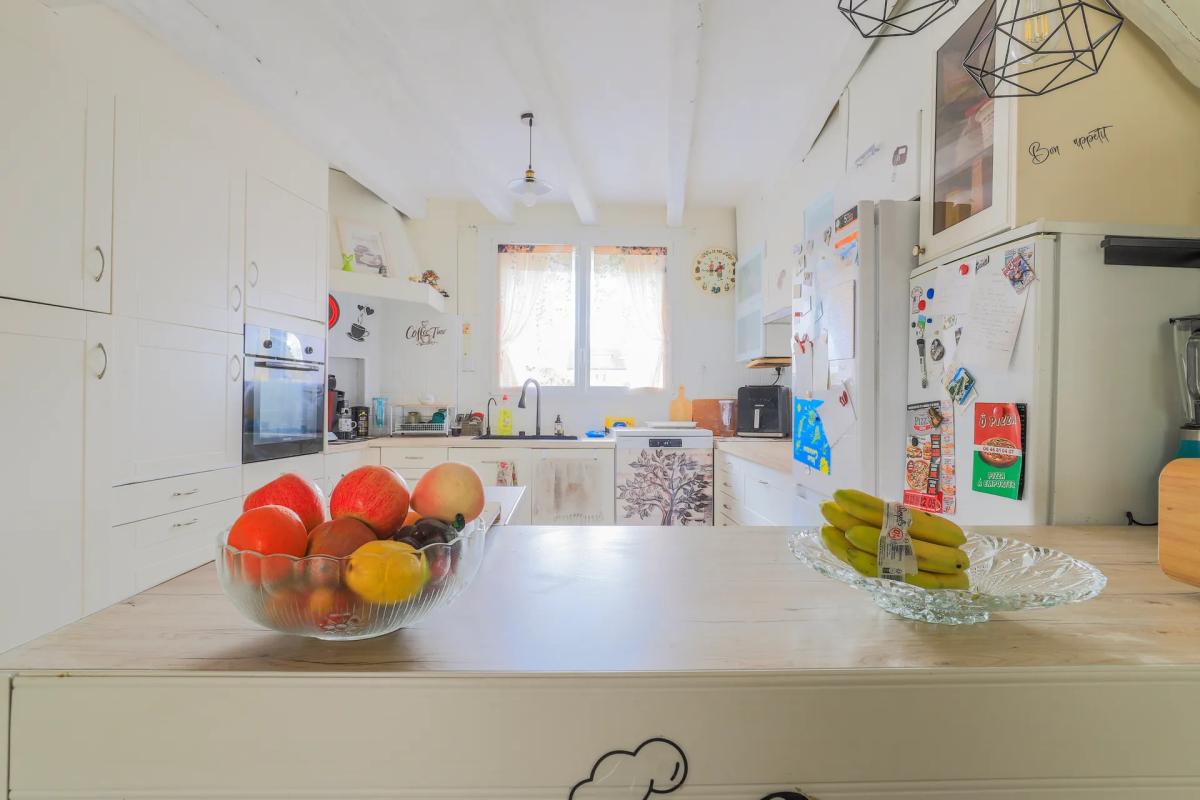 Dès l'entrée, le bien séduit par son atmosphère chaleureuse et son potentiel. Les espaces de vie, baignés de lumière naturelle, offrent un cadre convivial propice aux moments partagés en famille ou entre amis. L'agencement permet d'imaginer un lieu de vie à votre image, mêlant confort moderne et cachet existant.
