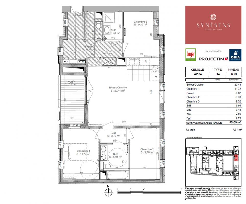 Magnifique appartement T4 de 85 m2 à louer, dans une résidence neuve, de standing et sécurisée, située au 52 Boulevard Jean Baptiste Lebas à LILLE. (Réf : A2 34)