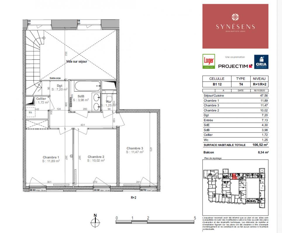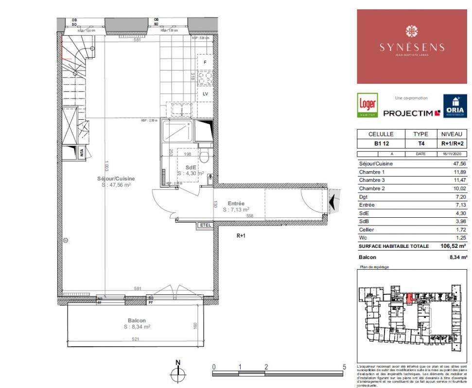 Magnifique appartement T4 en duplex de 106 m2 à louer, dans une résidence neuve, de standing et sécurisée, située au 222 rue Gosselet à LILLE. (Réf : B1 12)