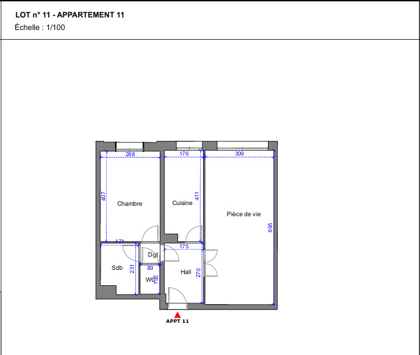 L'appartement se compose d'une pièce de vie lumineuse, d'une chambre, d'une salle de bain fonctionnelle, ainsi que d'une cuisine à aménager selon vos envies.