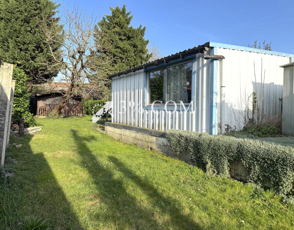 Sur l'extérieur : Un grand jardin de 300 m2 sans vis-à-vis avec un hangar de stockage + un cabanon