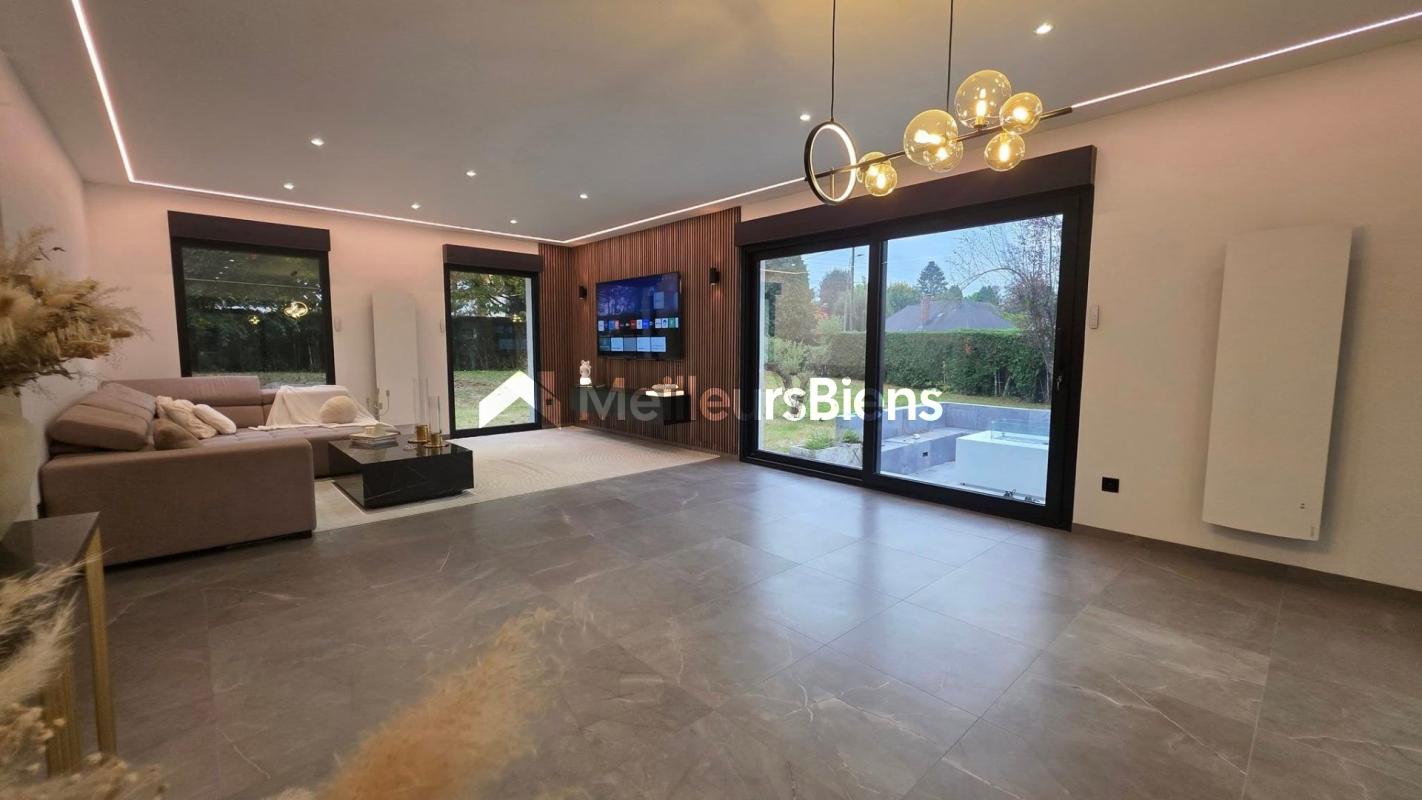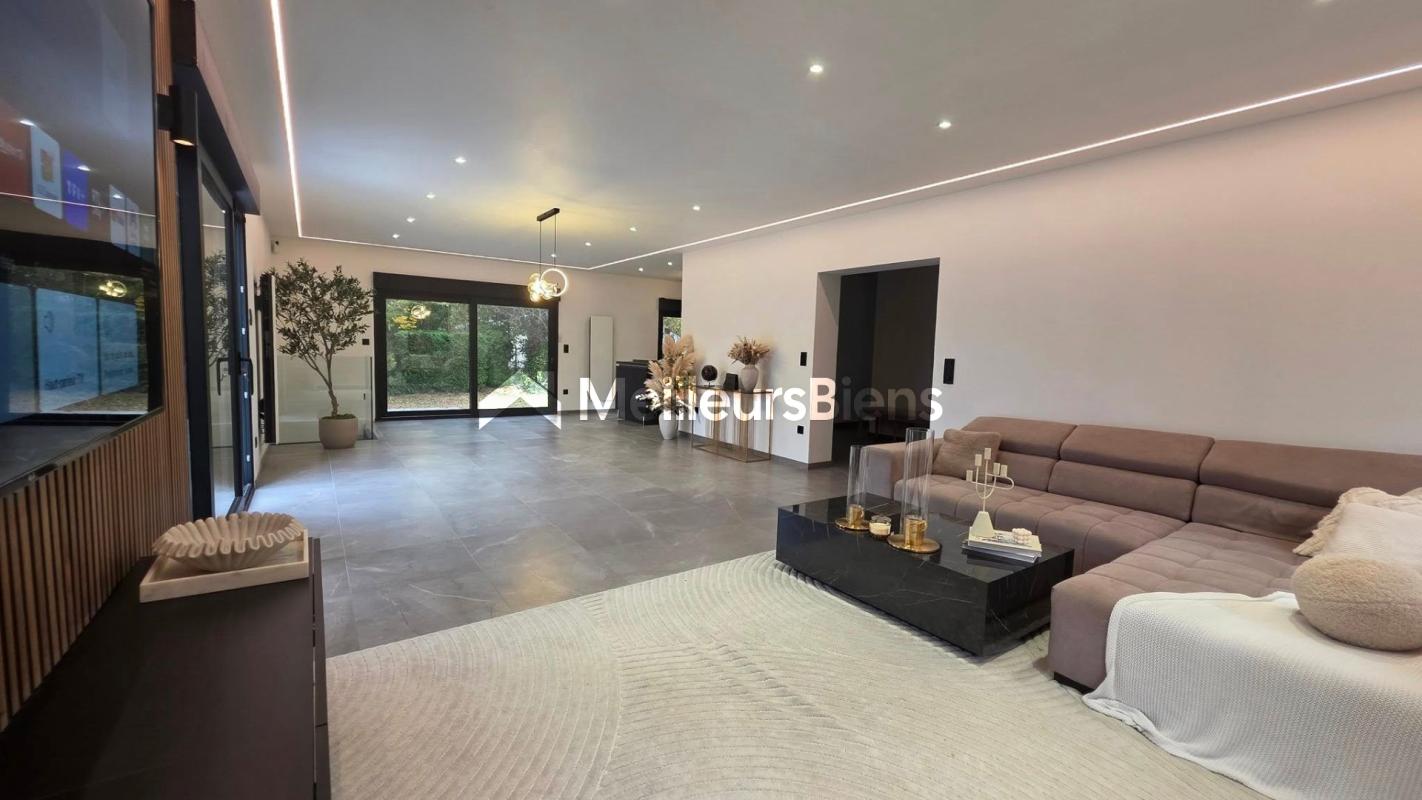 Rdc : Entrée, Salle à Manger, Salon, Cuisine Full Equipée, Wc, Suite avec écran motorisé pour vidéo projecteur dans plafond et Salle de Douche, 1 seconde chambre, Salle de Bains...