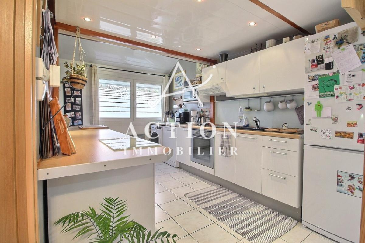 Dès l'entrée, vous serez séduit par un séjour lumineux d'environ 24 m², ouvert sur une cuisine équipée, parfait pour partager des moments conviviaux en famille ou entre amis.