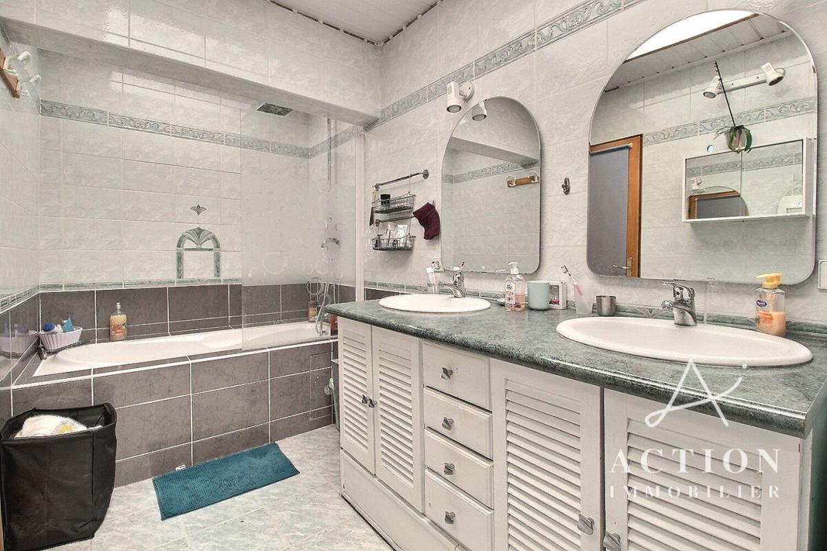 Dès l'entrée, vous serez séduits par un séjour spacieux et lumineux de 27m² avec une belle cheminée, suivi d'une grande cuisine dinatoire de 16.6m² sonnant sur le jardin. La salle de bain de 7.7m² avec baignoire, double vasque et wc séparé complètent le rez de chaussée.