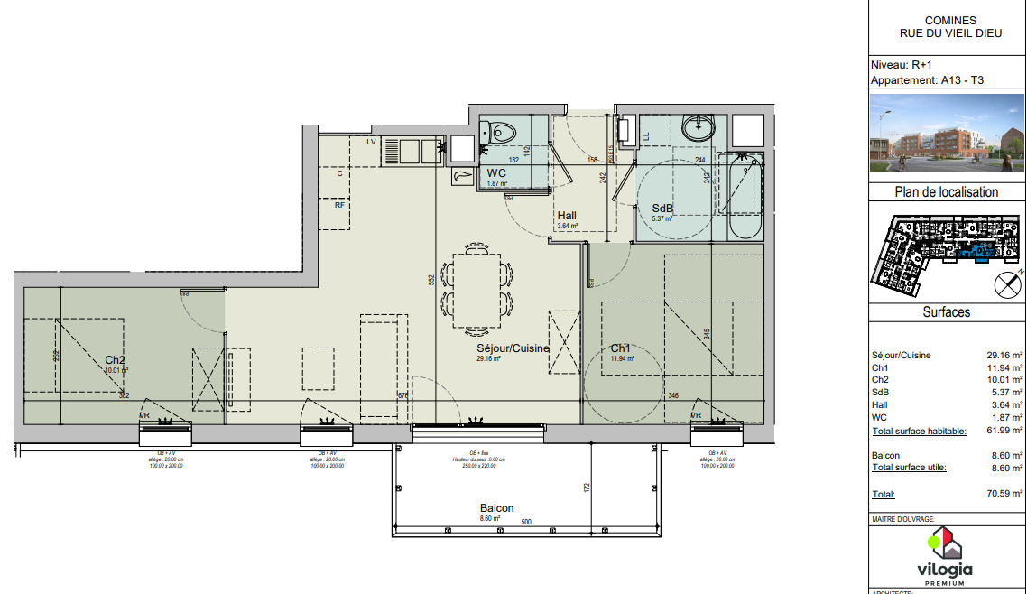 Comines Halle Marceau - appt T3 de 62 m2 - vendu 164 000 €