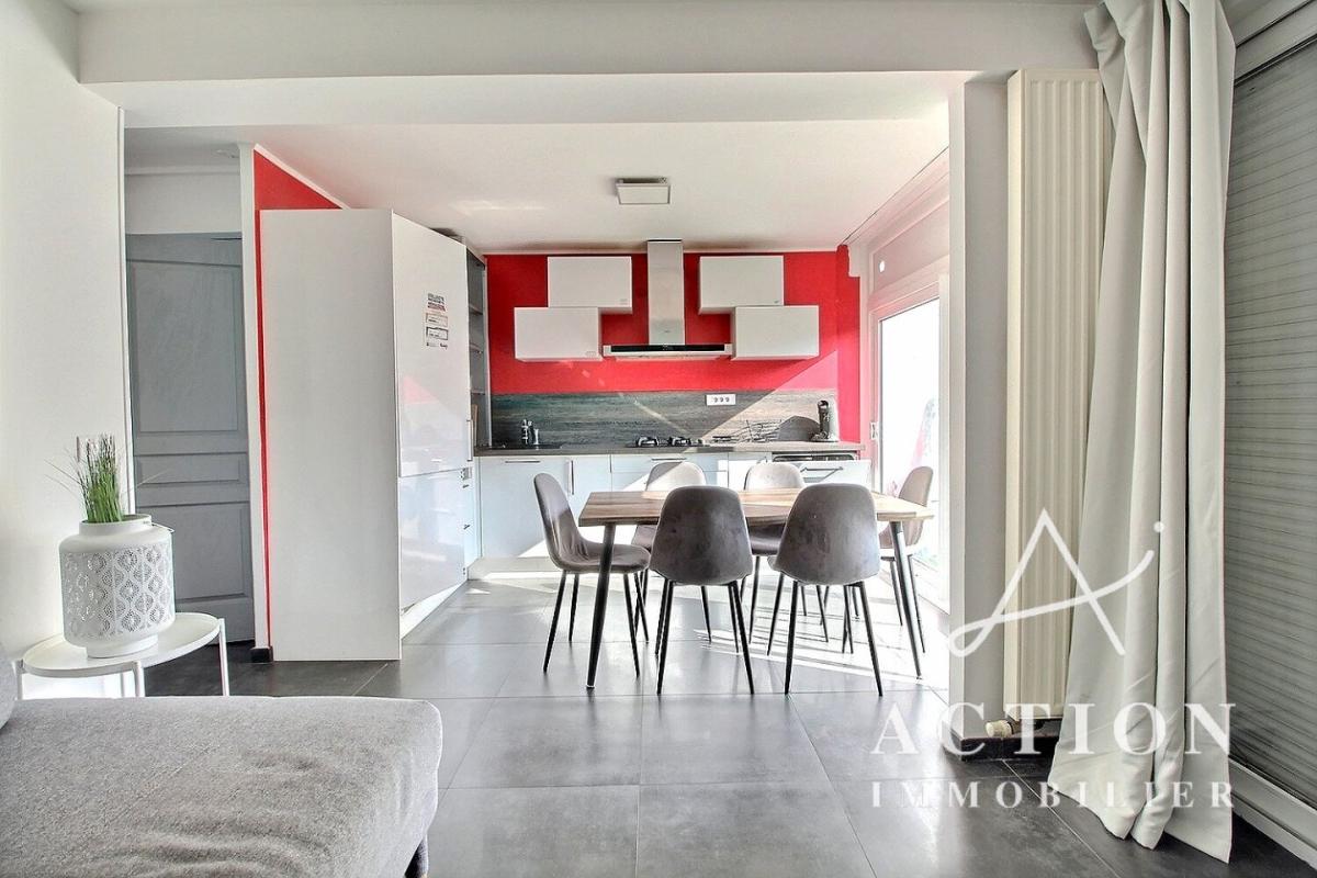 Ensuite, le rez-de-chaussée se compose également d'une pièce de vie comprenant cuisine, salon et salle à manger. Cette pièce est très lumineuse grâce à ses deux grandes baies vitrées donnant sur le jardin ainsi que son exposition plein SUD.