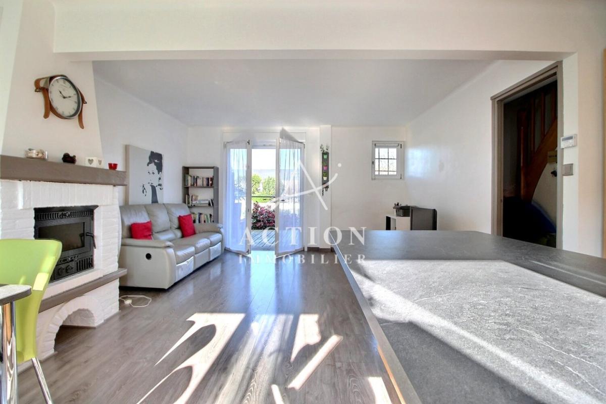 La pièce de vie se compose d'une cuisine équipée, ouverte sur le séjour avec accès sur une terrasse en bois bien exposée et sans vis à vis.