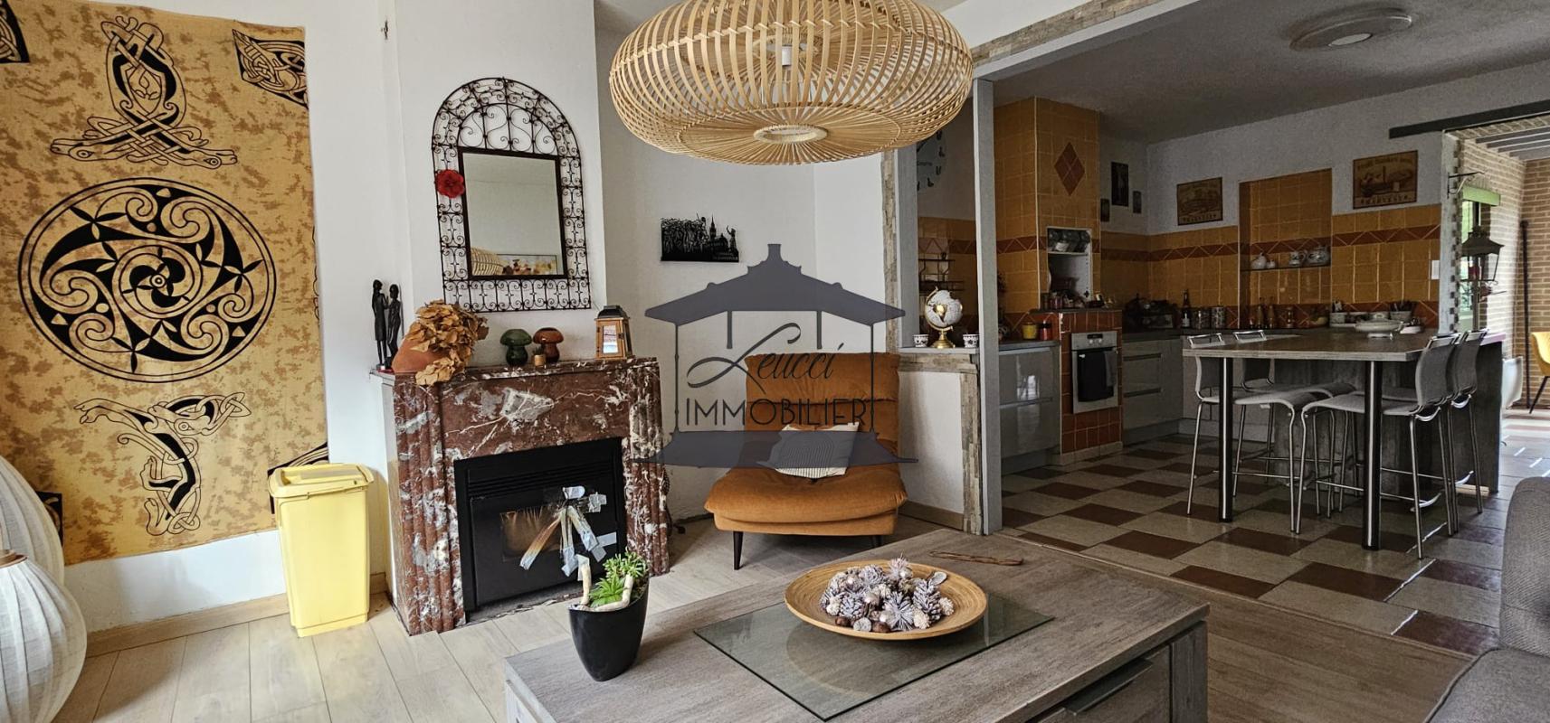 Passée l'entrée, vous découvrez une charmante cuisine avec ilot central ouverte sur le séjour avec cheminée et poele à bois. Dans l'extension, où se conjuguent modernité et charme de l'ancien, vous disposez d'une jolie vue sur le jardin pour des moments de détente et de convivialité. Vous bénéficiez également d'une jolie salle d'eau avec buanderie au rez de chaussée.