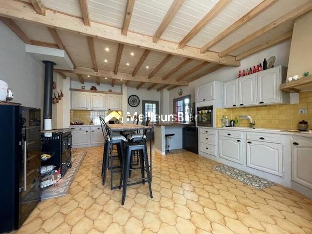 Découvrez cette belle maison de caractère de 6 pièces comprenant au rez-de-chaussée: une entrée, un séjour lumineux offrant un espace de vie agréable et convivial revêtu de carrelage, une belle cheminée foyer ouvert, une salle de bains, WC, une grande cuisine aménagée et équipée avec un fourneau Bouilleur (Poêle à bois) donnant sur une véranda chauffée.