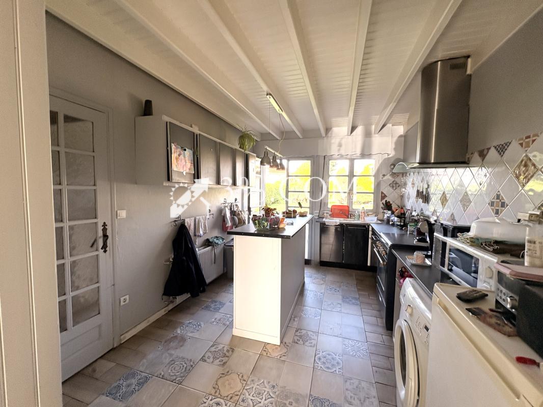 Entrée, salon avec cheminée, salle à manger, chambre au rez-de-chaussée, wc, salle de bain, cuisine accès jardin directement.