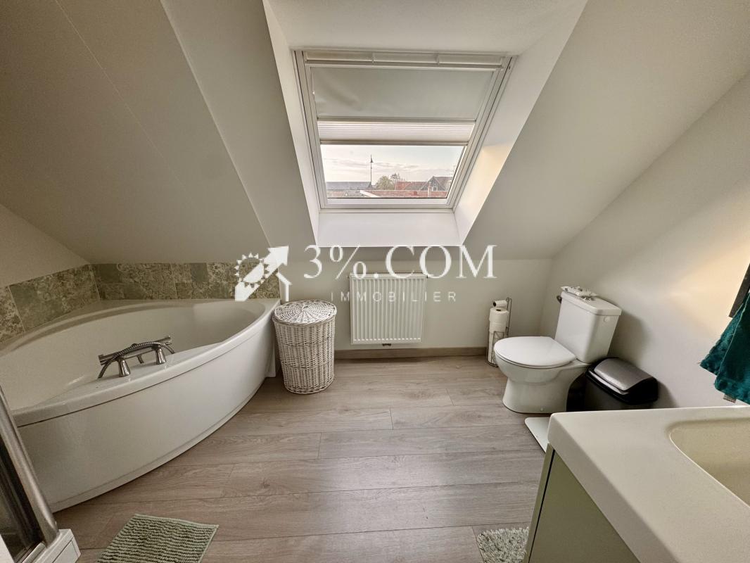 À l'étage, vous trouverez 3 chambres ainsi qu'une salle de bain avec baignoire, douche et WC.