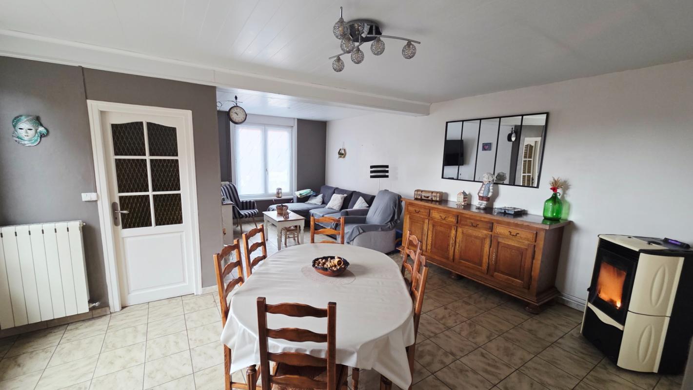Au rez-de-chaussée : Salle/salon de 31 m² avec poêle à pellets, cuisine de 12 m², salle de bain de 6 m² ( baignoire et vasque), pièce bureau de 8 m², cellier de 5 m² et wc.
