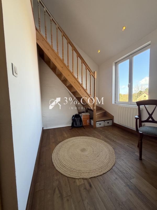 En ouvrant la porte, vous découvrirez un rez-de-chaussée lumineux offrant un bel espace de vie (environ 60 m2) ouvert, composé d' une entrée avec placard de rangement, d'une cuisine aménagée et équipée, d'un espace séjour/salon avec poêle à granules. Des wc indépendants et une vaste salle d'eau complétent le rez-de-chaussée. L'étage se compose de deux chambres dont une en mezzanine avec un dressing.