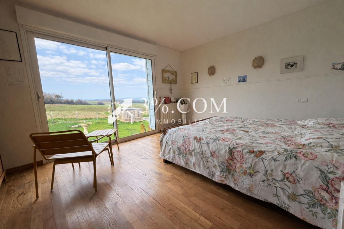 Au rez-de-chaussée, vous profiterez d'un chaleureux salon-séjour de 27 m2 avec poêle à bois récemment installé, une vaste véranda chauffée de 18m2 (non comptabilisé dans la superficie habitable), une cuisine aménagée, une salle d'eau avec dressing et une chambre de 16m2 avec une magnifique vue sur la campagne.