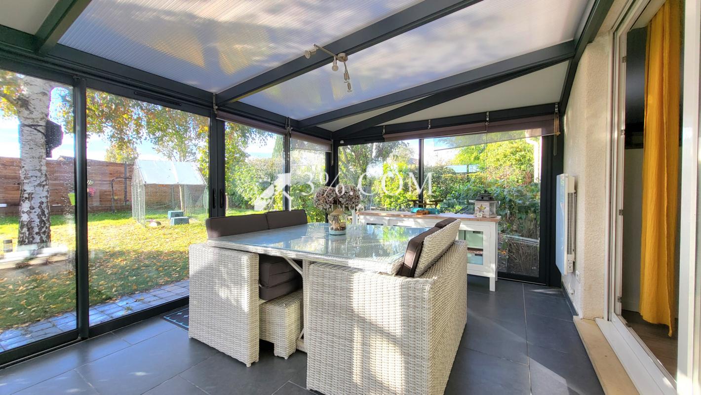 Hall d'entrée, spacieux séjour de 44 m2 ouvert sur cuisine équipée - Belle véranda chauffée avec vue sur le magnifique jardin - Deux belles chambres & salle de douche au rez-de-chaussée -