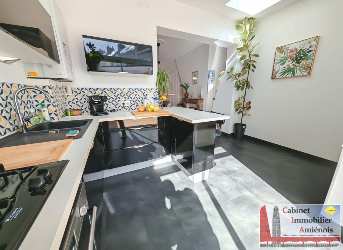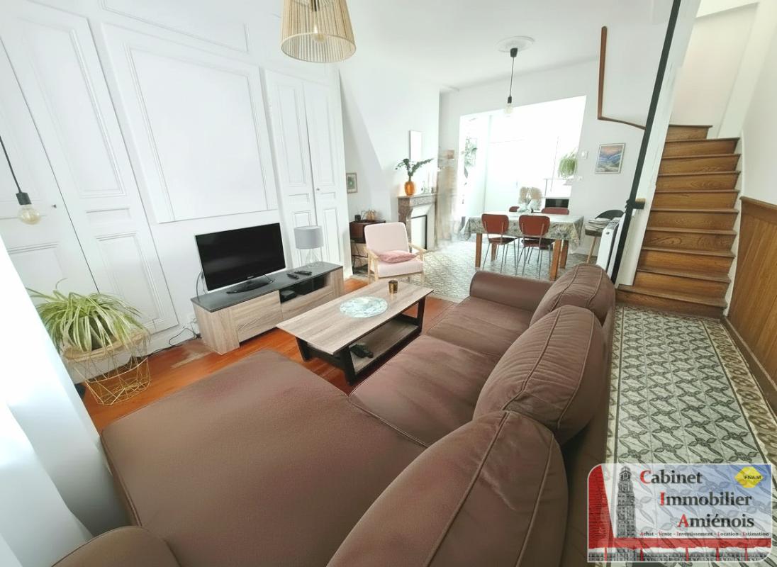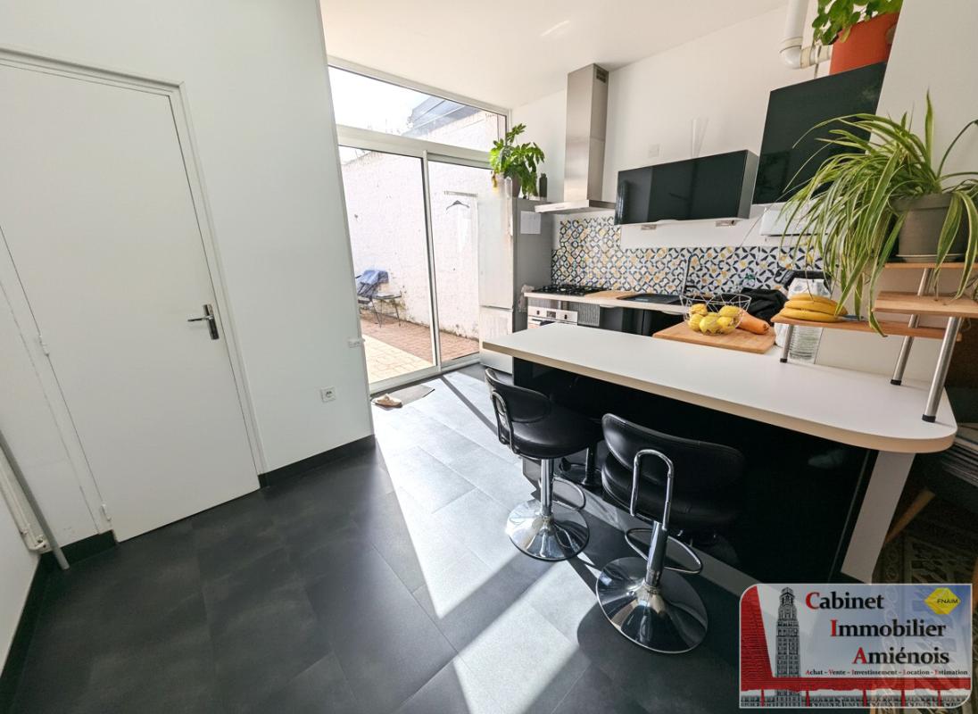 Cette jolie amienoise avec cour, de 77 m2 (66m2 au sol à 1.80m) comprenant :