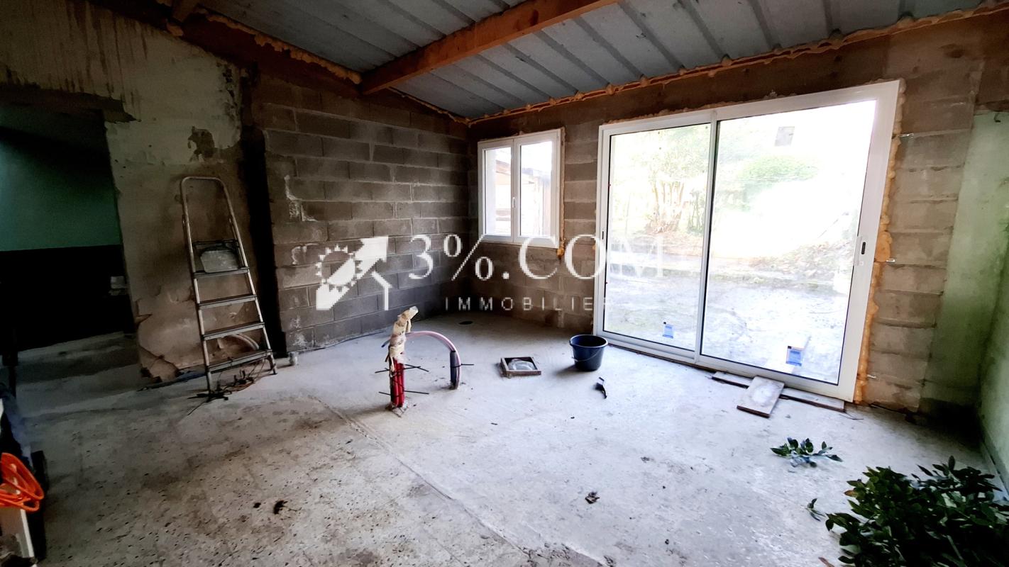 ***Rdc Grande pièce ( séjour double ? ) 25 m2 avec conduit de cheminée. 1 extension prévue pour faire une cuisine avec baie vitrée face jardin (20 m2), 1 pièce pour faire WC et salle de bain.