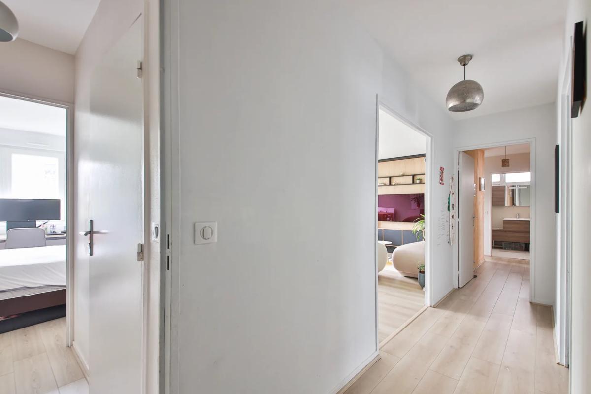 L'appartement, situé en arrière-cour, bénéficie d'un calme absolu et d'une vue sur le jardin arboré de la copropriété.