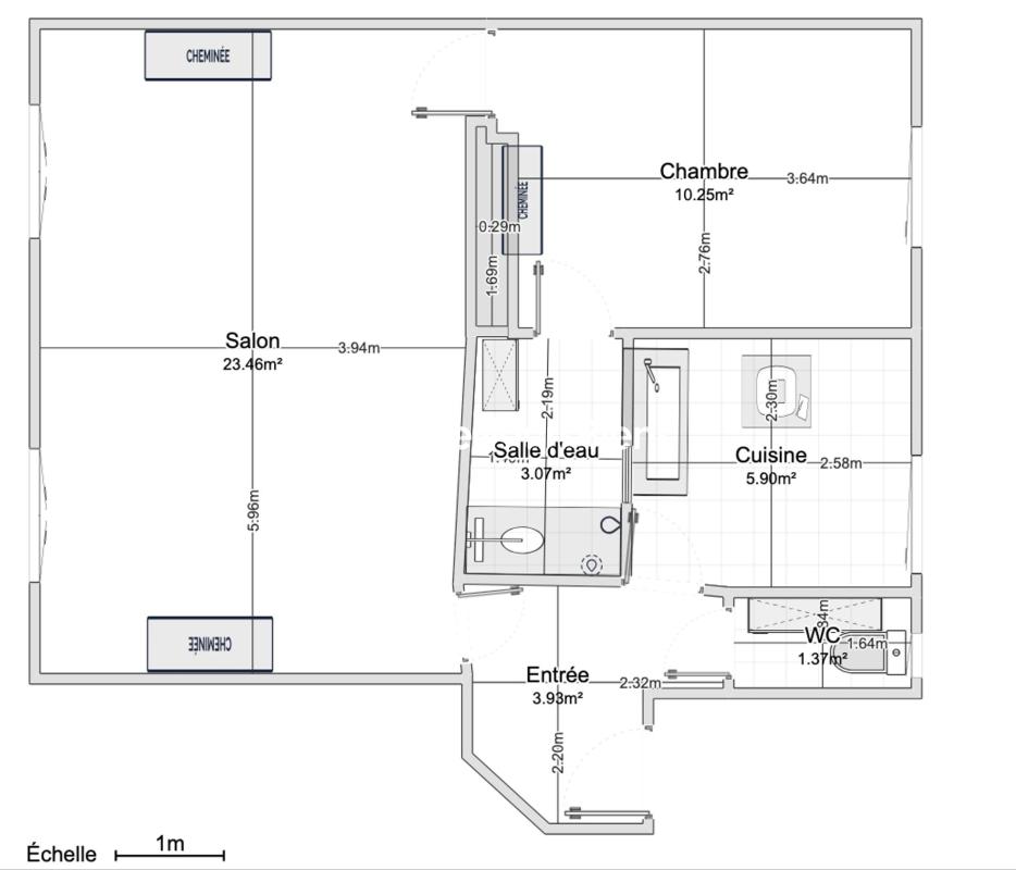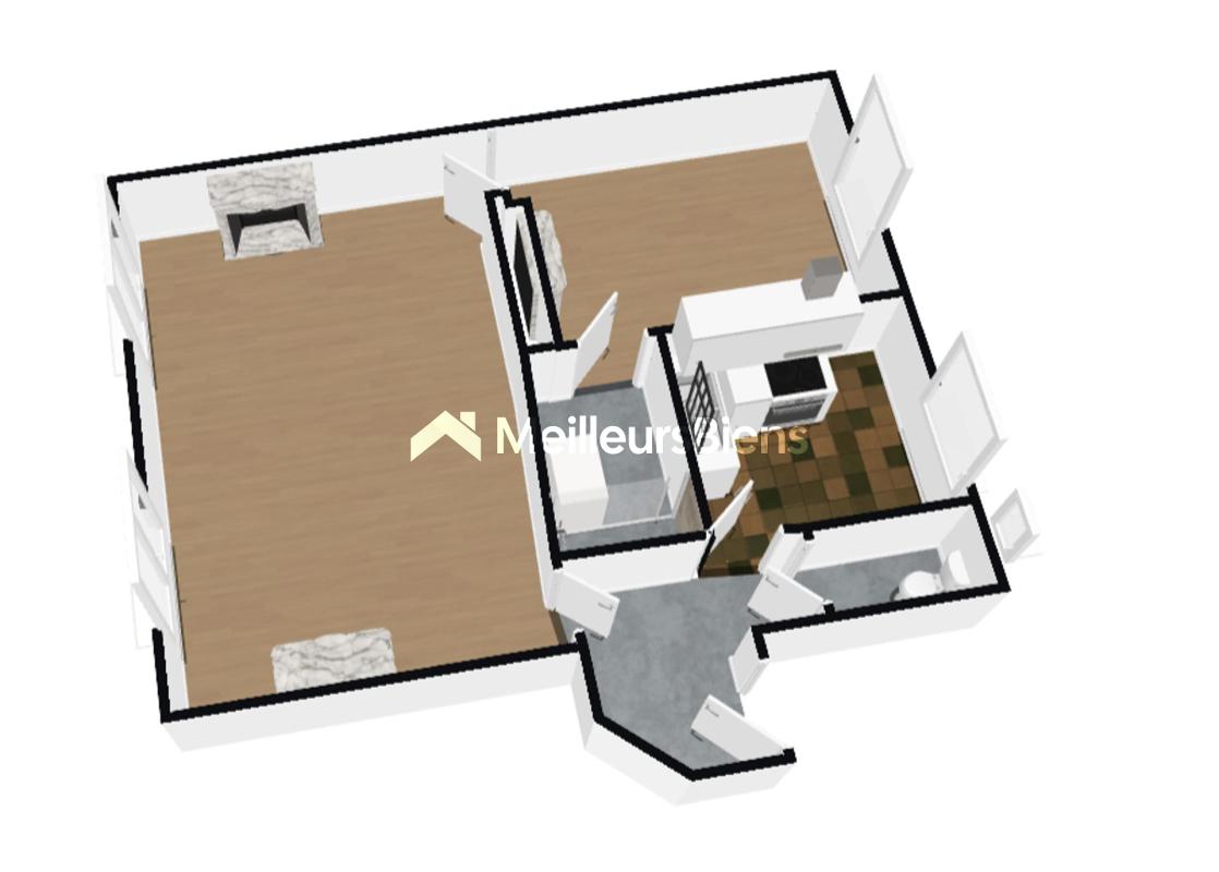 Il se compose d'une entrée, d'un double séjour lumineux, d'une chambre indépendante, d'une cuisine séparée, d'une salle d'eau avec douche et de WC séparés.