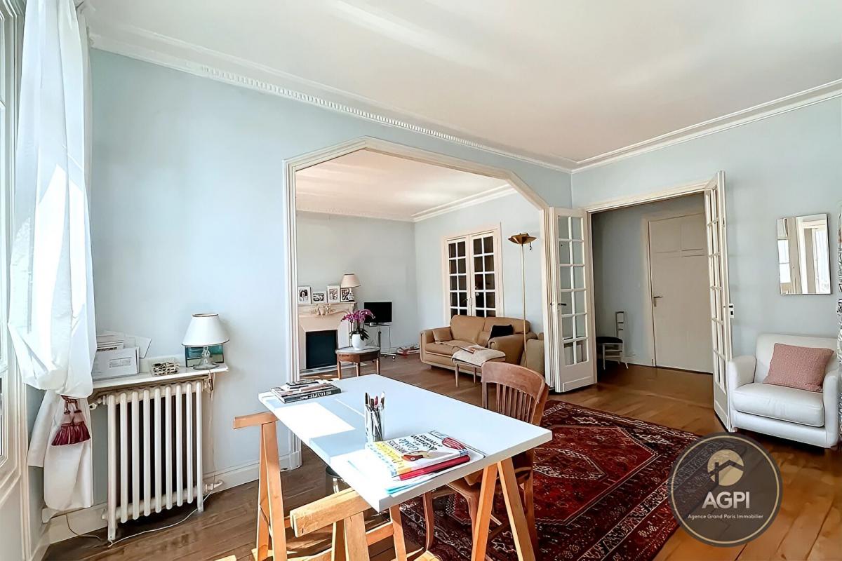 Au coeur du 16e arrondissement de Paris, découvrez ce charmant appartement de 5 pièces de 101 m², un véritable cocon où il fait bon vivre. Dès l'entrée, vous serez séduit par le double séjour baigné de lumière, sublimé par un parquet massif qui apporte chaleur et élégance. La cuisine indépendante offre un espace fonctionnel, tandis que les trois chambres, dont une en enfilade (pouvant également être aménagée en dressing ou bureau), promettent confort et intimité. Le calme est au rendez-vous : les chambres donnent sur une cour intérieure, offrant un havre de paix en plein coeur de la capitale. Bien entretenu, cet appartement vous laisse la liberté d'imaginer une décoration à votre image. Une cave saine et un local vélo facilement accessible vient compléter ce bien, idéale pour le rangement ou la conservation de vos effets personnels. Vous profiterez également d'un cadre de vie pratique avec les commerces, les écoles et les transports à deux pas. Un lieu de vie rare et dans l'un des quartiers les plus prisés de Paris. Ne manquez pas cette opportunité, venez le visiter et laissez-vous charmer ! Situation concernant les transports en commun à pied : Metro Exelmans 8 minutes, Gare Pont de Garido 7 minutes, Metro Porte de Saint cloud 10 minutes