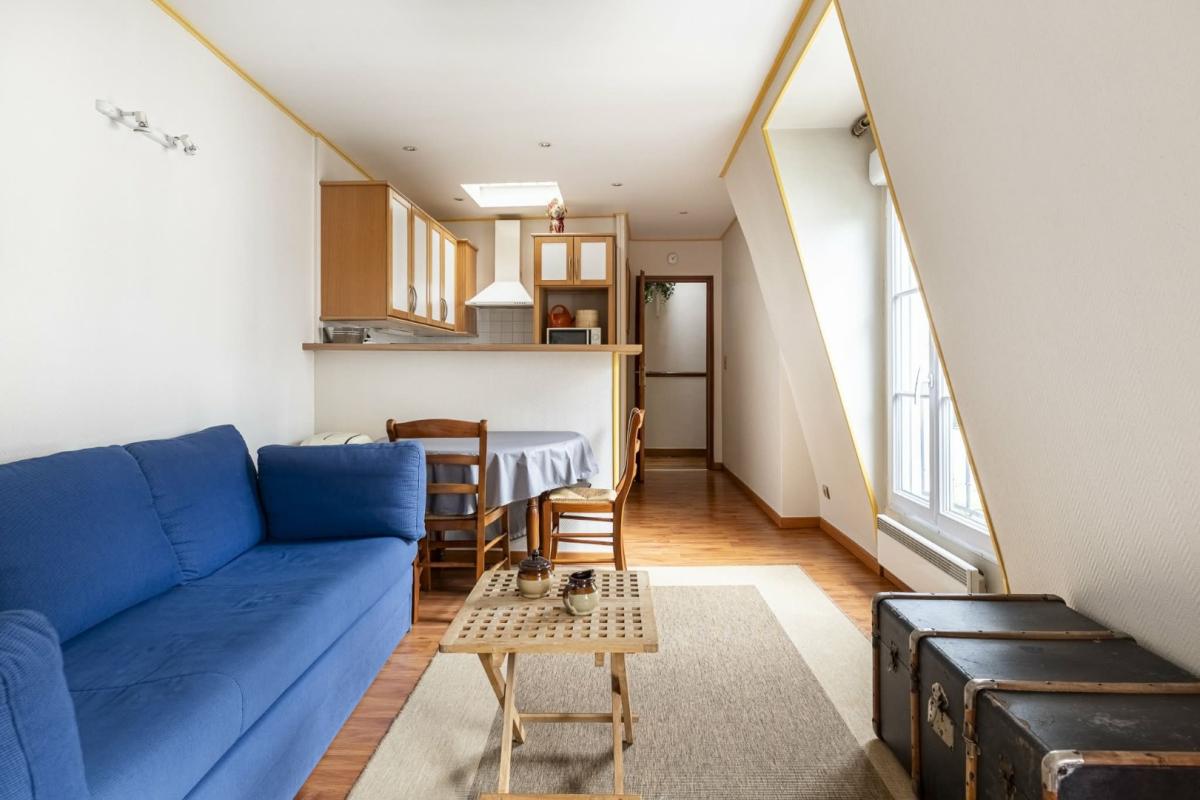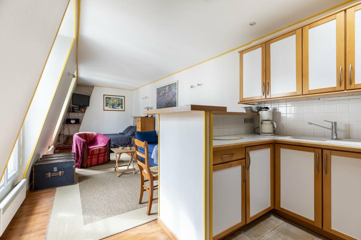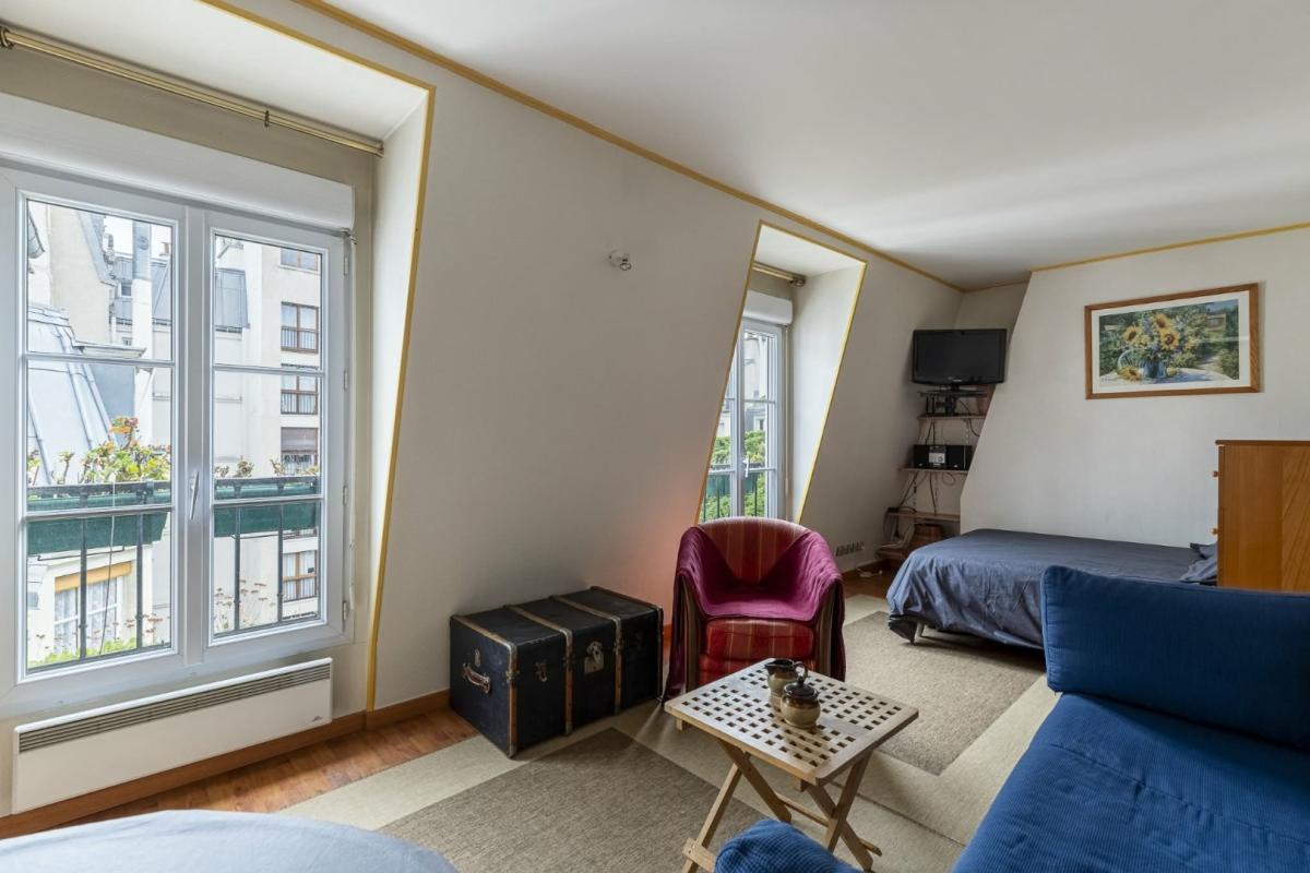 FIJ Immobilier vous propose en exclusivité ce ravissant studio de 34 m², niché au cinquième et dernier étage sans ascenseur d'un immeuble de caractère datant de 1896.