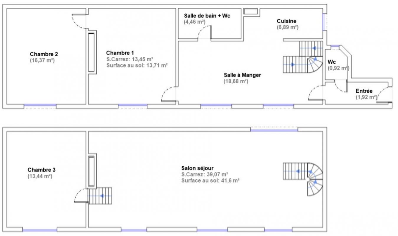 - À l'étage, un séjour cathédrale baigné de lumière, grâce à 4 grandes fenêtres exposées Sud, et une troisième chambre ou bureau selon vos besoins.