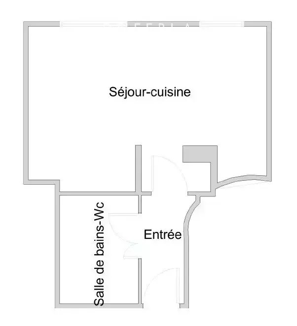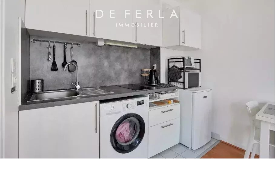 L'appartement s'ouvre sur une entrée desservant une pièce de vie lumineuse, agrémentée de deux fenêtres, permettant un aménagement confortable. La cuisine, ouverte sur le séjour, optimise l'espace et favorise la convivialité. Un coin nuit avec rangements intégrés vient compléter l'ensemble. Une salle de bains avec WC est également à disposition.