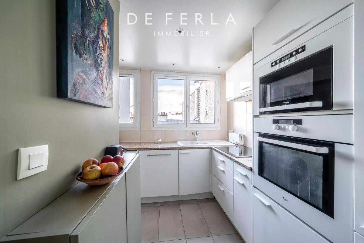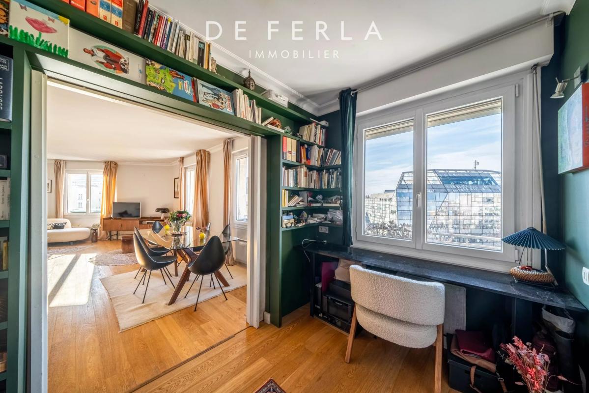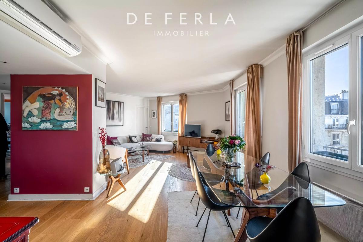 Cet appartement est baigné de lumière et vue sur les toits de Paris.