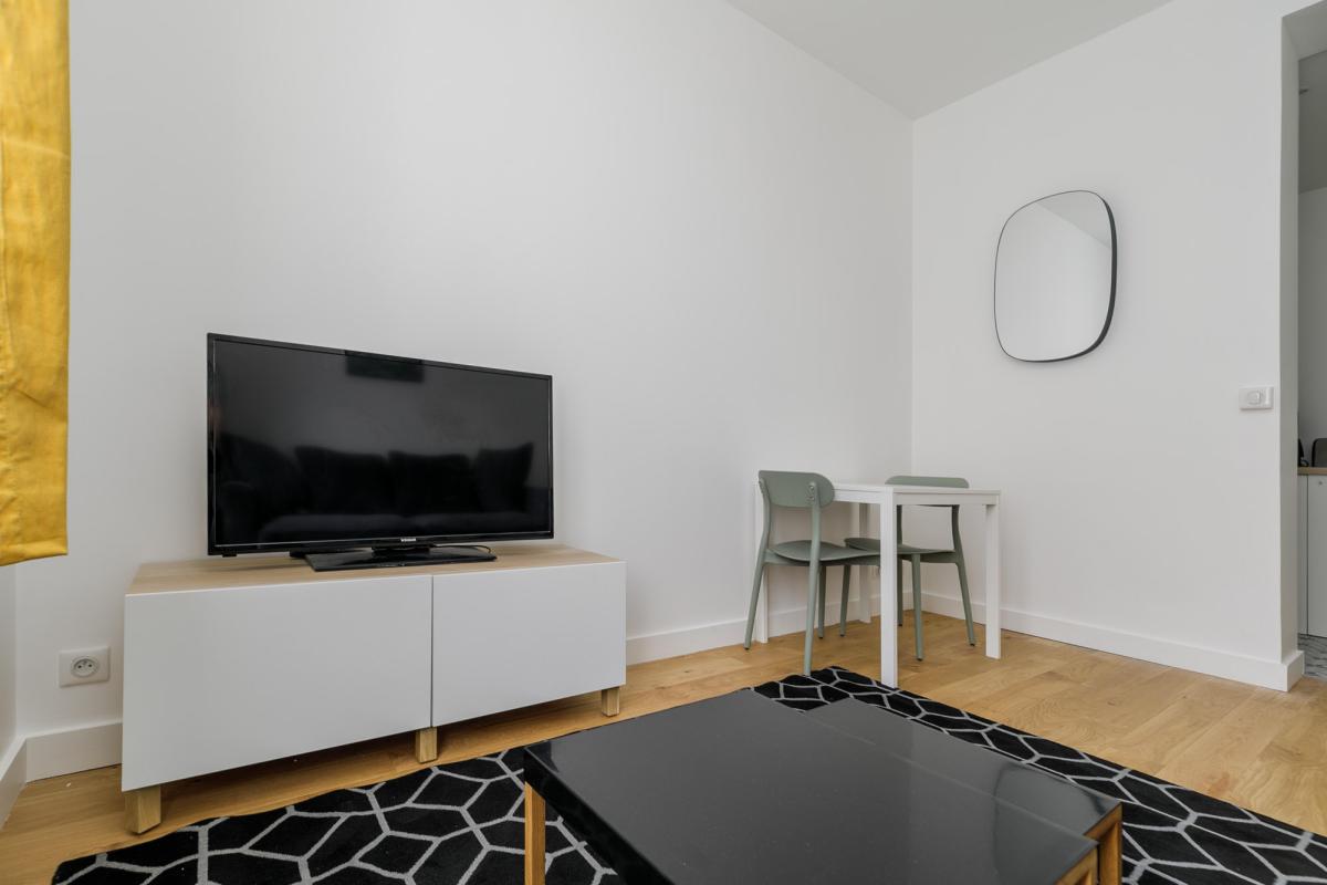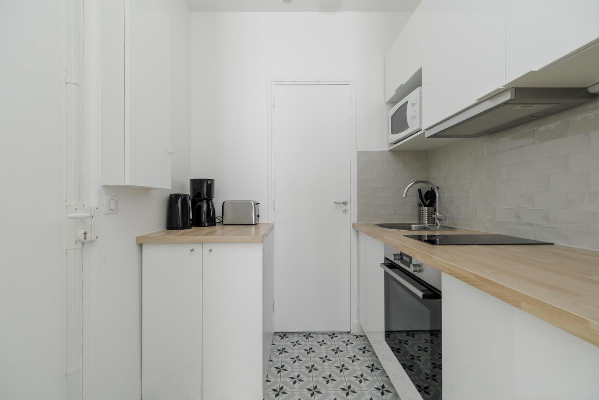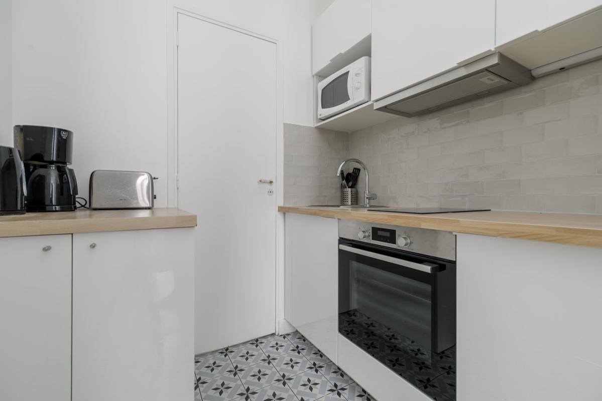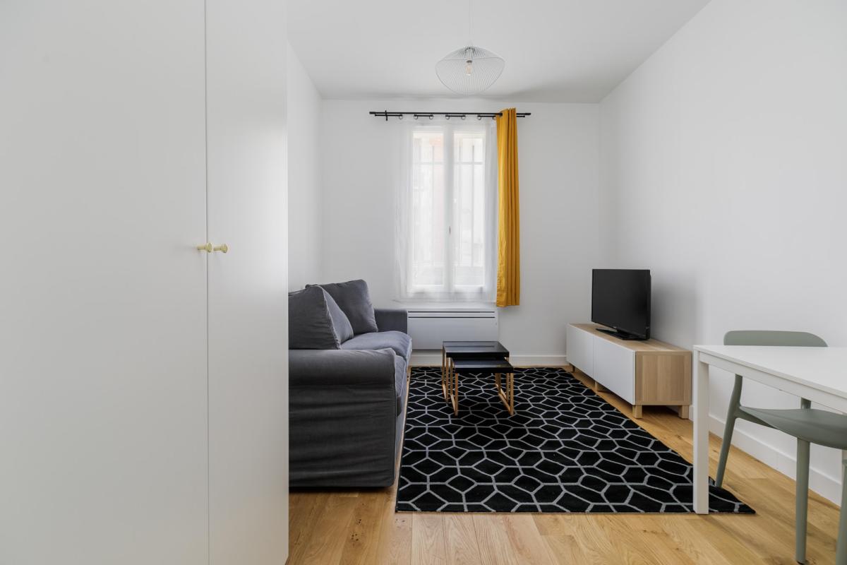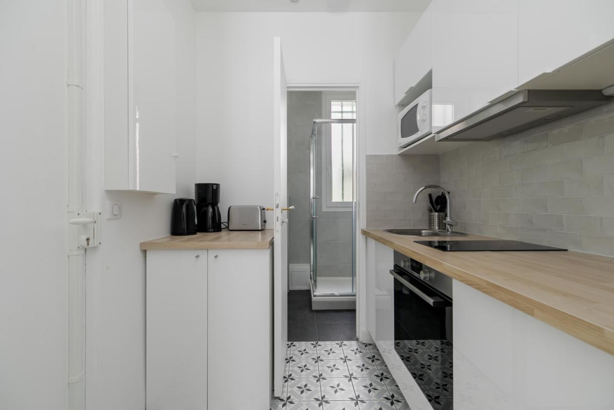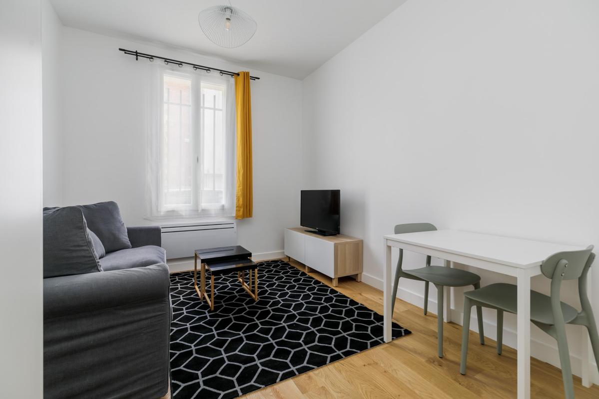 Métro MAIRIE DE SAINT-OUEN - Studio meublé - Au RDC comprenant : une entrée, une pièce principale, une cuisine séparée équipée et aménagée composé d'un four, plaques induction, frigidaire et hotte, lave-linge, une salle d'eau avec WC. 5 min à pied du métro Mairie de Saint-Ouen (Ligne 13 et ligne 14); Le chauffage et l'eau chaude sont individuels électriques. Belles prestations, parquet au sol, fenêtres PVC double vitrage. Bail code civil, loi de 89 nous consulter.
