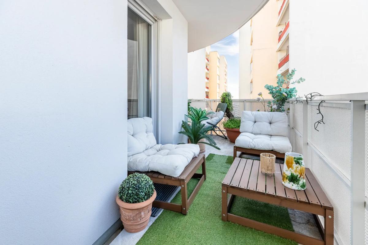 Traversant, calme et lumineux, il offre un agréable séjour avec cuisine ouverte moderne, deux chambres et un large extérieur d'environ 34 m2 sous forme de balcon/terrasse, idéal pour profiter de la vue en hauteur. L'entrée dessert les différentes pièces, la salle de bain est indépendante et les toilettes sont séparées.