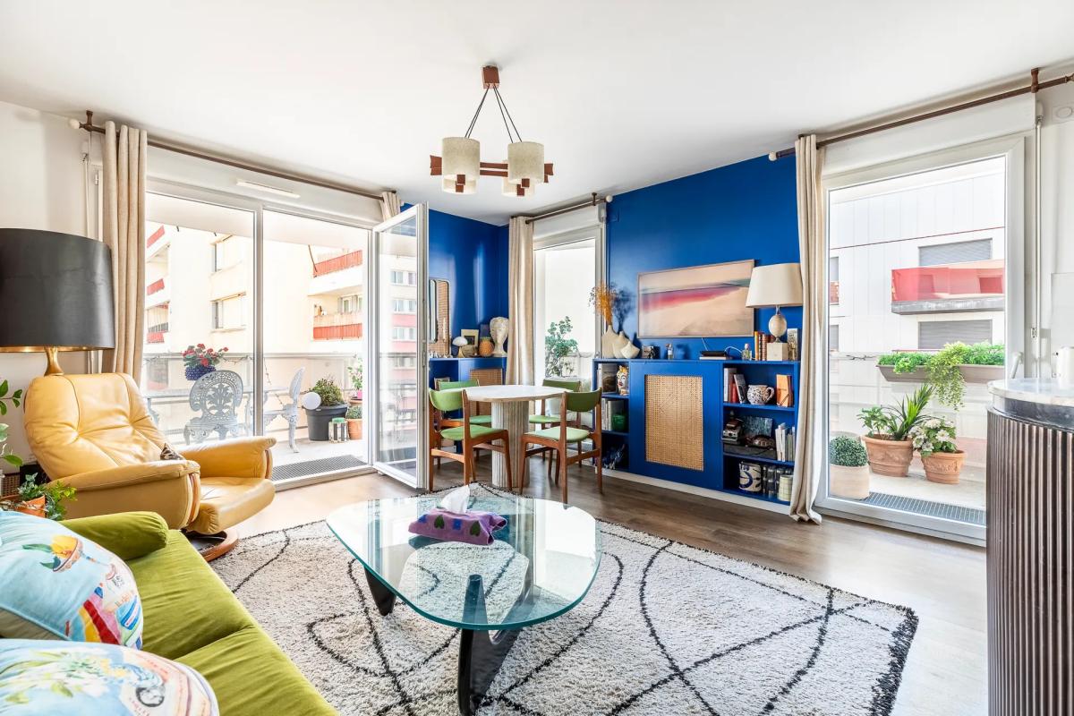 Le séjour, baigné de lumière grâce à son exposition sud-ouest, s'étend sur une généreuse surface de 50 m² avec un élégant parquet au sol.