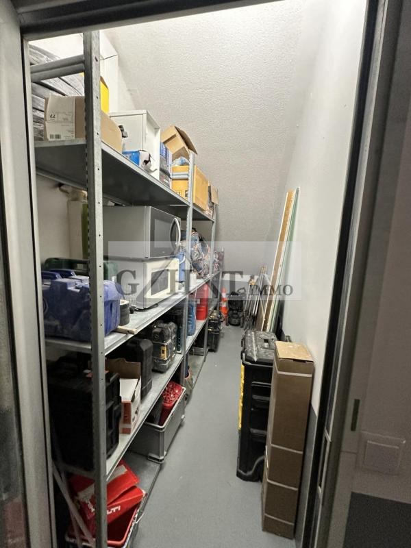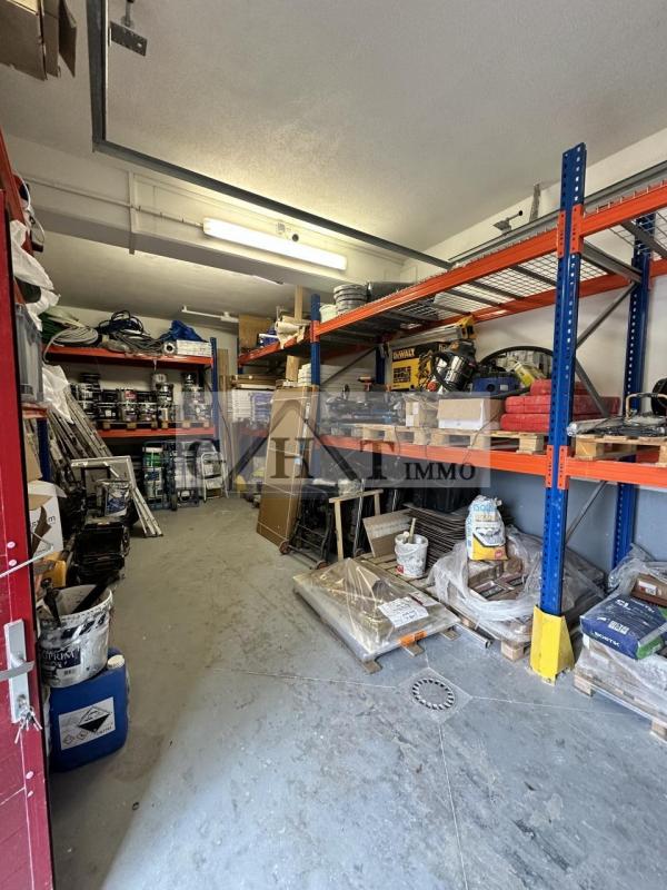 -65 m² de stockage en rez-de-chaussée, accessible via une porte sectionnelle et bénéficiant d'une hauteur sous plafond de 3,50 mètres.