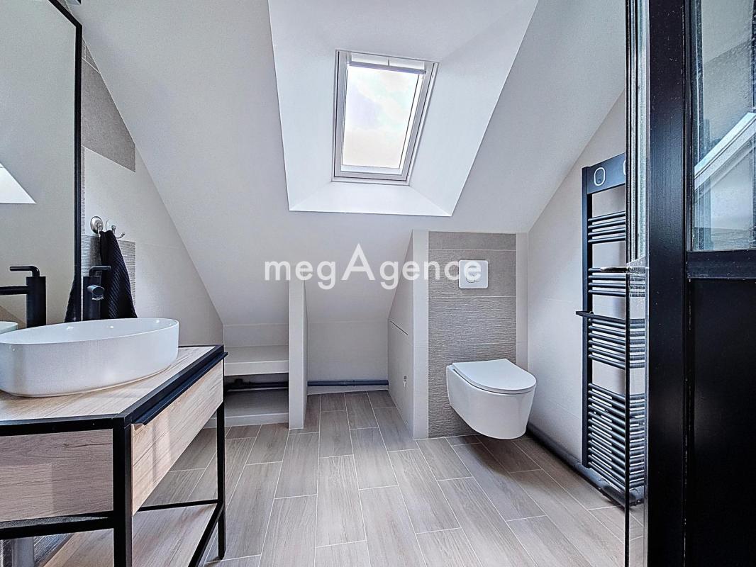 Située à proximité des écoles, commerces, gare et transport, cette maison est située dans un quartier résidentiel et calme. Elle propose au rez de chaussée une entrée par la véranda, séjour avec cuisine moderne ouverte équipée aménagée, bureau, chambre parentale avec salle de bains, wc. L'étage propose une grande pièce palière pouvant servir de bureau ou salle de jeux, salle d'eau avec wc et deux chambres. Buanderie et cellier en sous-sol. Le jardin sans vis à vis est idéal pour jouer, profiter des beaux jours et recevoir. Deux dépendances de 9 m² chacune. Possibilité de garer deux véhicules.