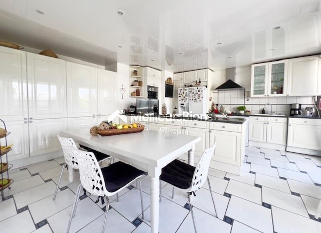 La cuisine, très spacieuse, de 25 m², séparée et équipée, offre un coin repas, beaucoup d'espaces de rangement dotée d'un grand plan de travail et un accès direct à la terrasse (orientée Sud) pour profiter des beaux jours.