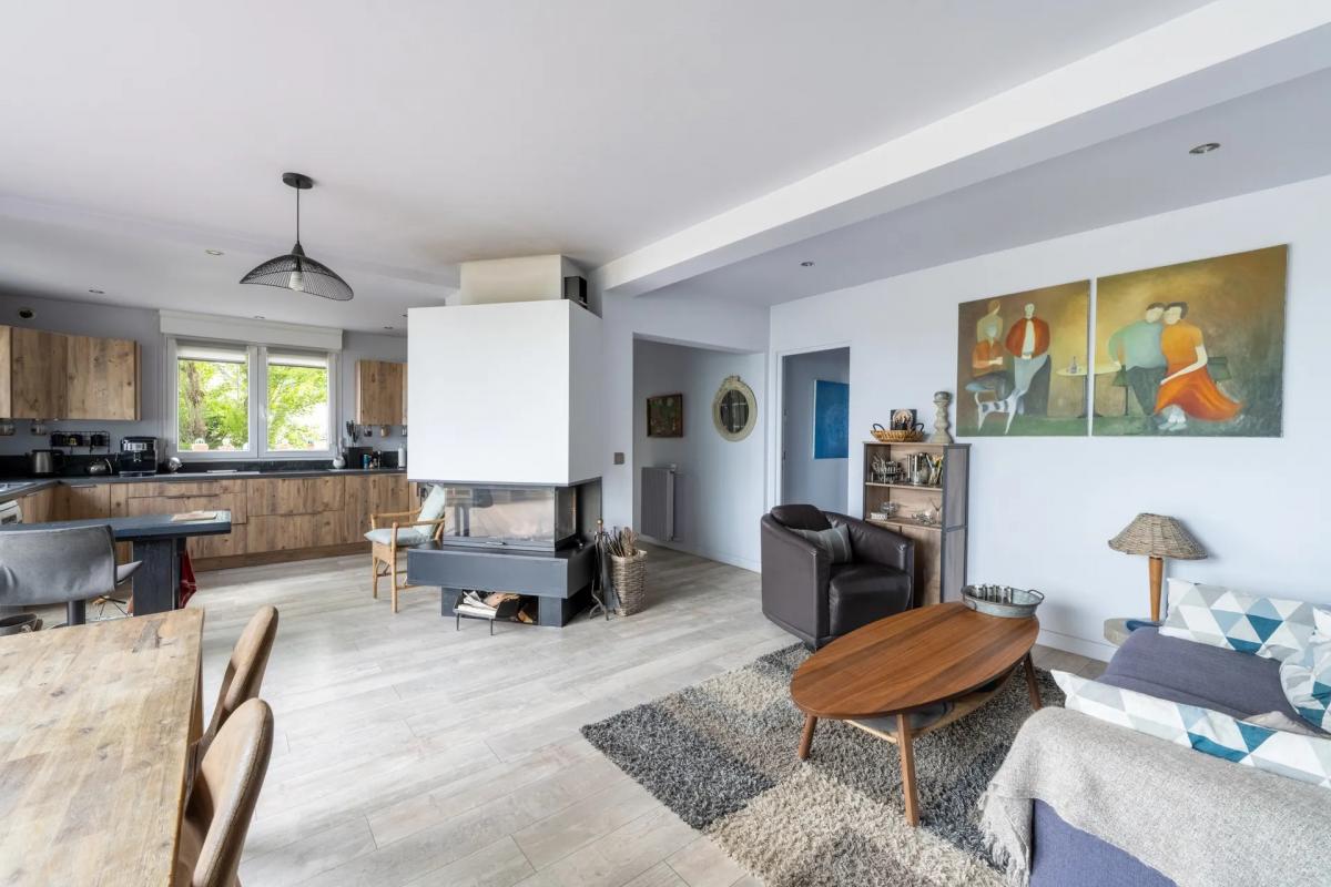 - Cuisine ouverte sur salle à manger avec cheminée,