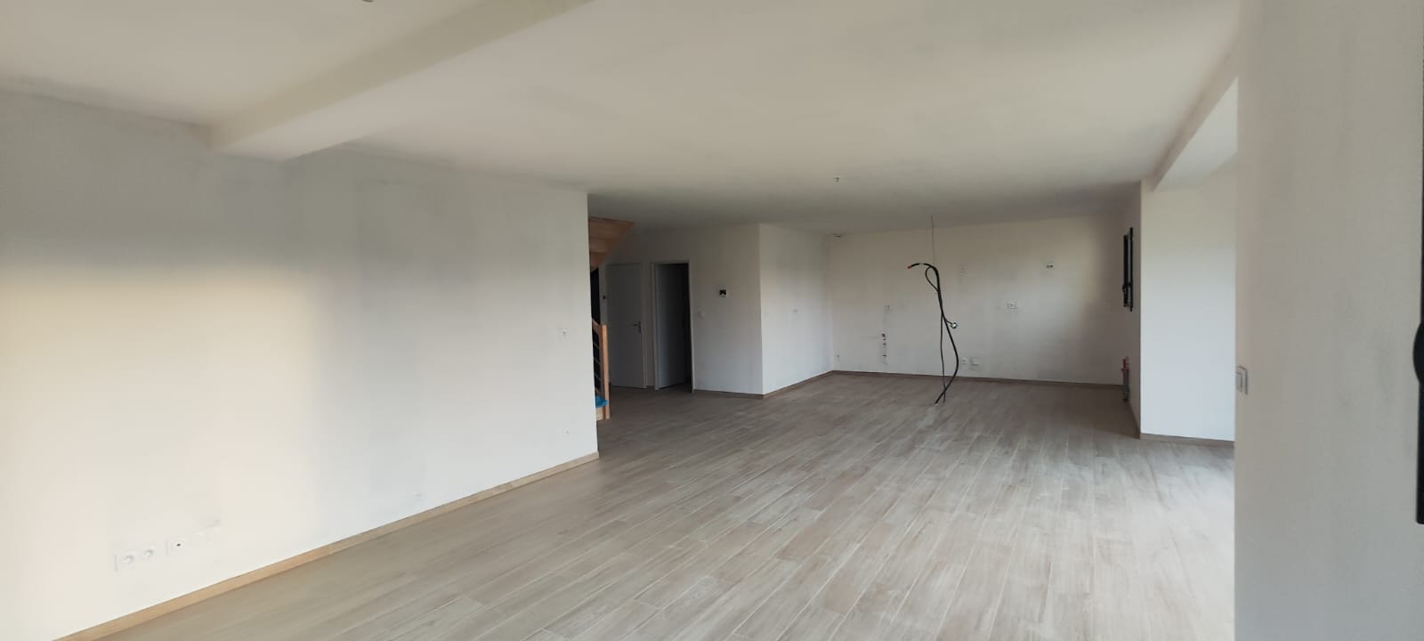 Une entrée donnant sur une confortable pièce de vie de 62 m² avec sa cuisine ouverte