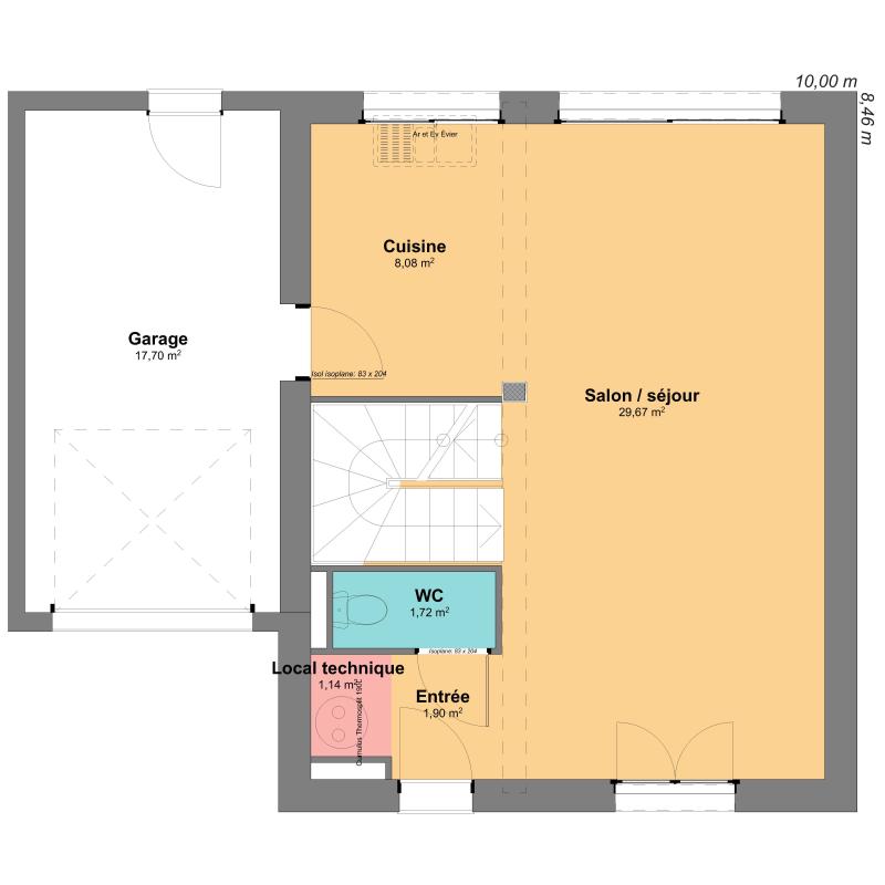 Cette maison de 3 chambres offre une superficie initiale de 82 m²