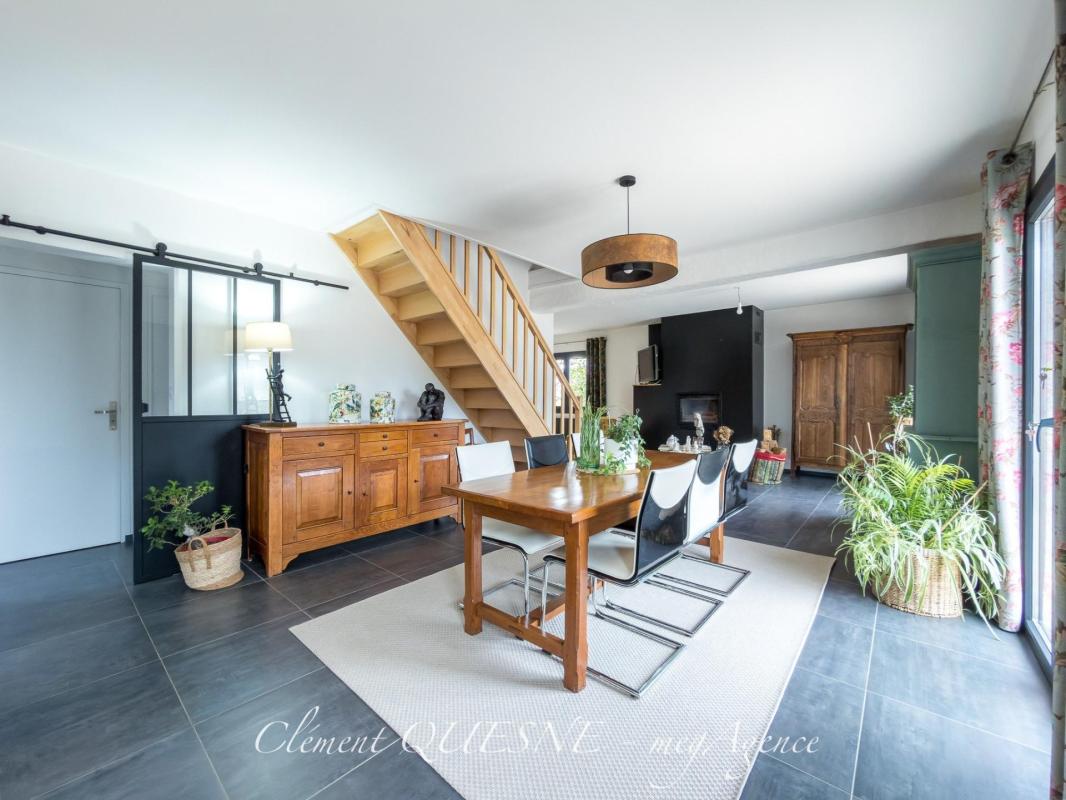 Le bien est implanté sur un agréable terrain arboré de 1500m² et offre une surface habitable de 118m². La maison comprend : Au RDC, cuisine aménagée-équipée ouverte sur un vaste séjour avec insert bois (pièce de vie de 56m²), chambre, salle d'eau, dégagement, WC. À l'étage, palier, 2 chambres, salle de bains, WC.