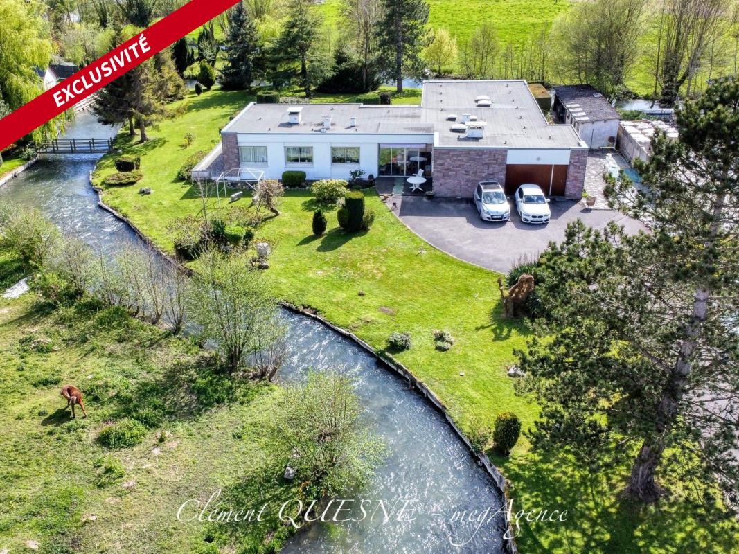 Située à seulement 400 mètres du centre-bourg d'Envermeu, dans un cadre verdoyant et paisible, cette maison d'architecte de plain-pied de 246m² vous séduira par ses volumes généreux, sa luminosité, ses matériaux nobles et son environnement relaxant. La parcelle arborée de 3240m², traversée par la rivière de l'Eaulne, offre un véritable havre de paix, propice à la détente et à la contemplation de la nature, tout en étant à proximité immédiate des commerces et commodités.