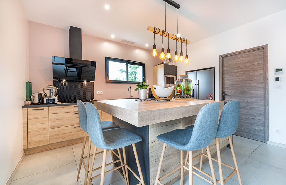 une pièce de vie chaleureuse et lumineuse,