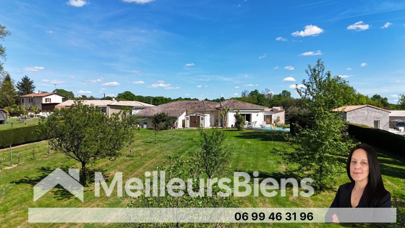 Le terrain clos de 5 170 m², entretenu par robot, offre de beaux espaces extérieurs avec piscine à pompe à chaleur, étang et boulodrome. Double garage et garage camping-car complètent le tout.