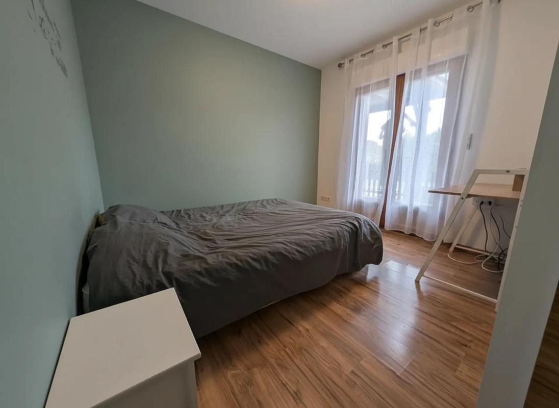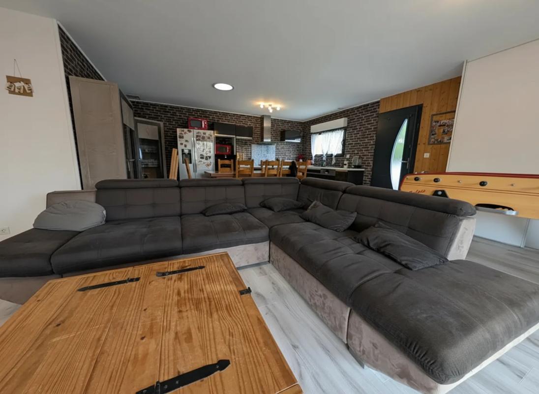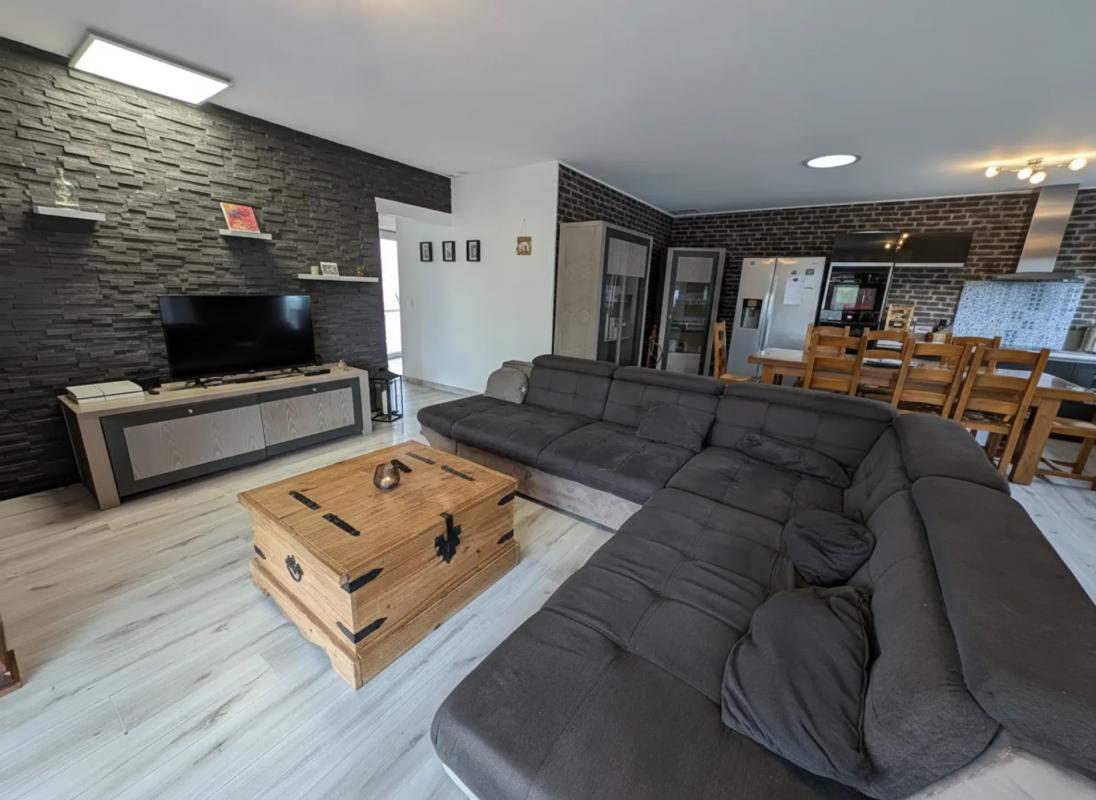 L'intérieur, baigné de lumière grâce à de grandes ouvertures, dévoile un séjour chaleureux avec parquet, sublimé par une cuisine ouverte et moderne. La partie nuit se compose de trois chambres accueillantes, dont certaines avec rangements intégrés, toutes reliées par un dressing fonctionnel. Une buanderie, une salle d'eau et des toilettes séparées complètent cet espace ingénieusement aménagé.