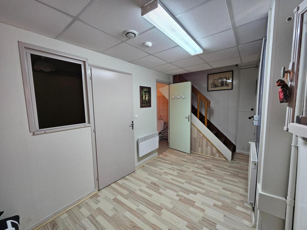 La maison de 68 m² se compose d'une cuisine aménagée au rez-de-chaussée, tandis qu'à l'étage, un palier dessert deux chambres et une salle d'eau avec WC. Le rez-de-jardin propose une chambre supplémentaire, une salle d'eau avec WC, une buanderie et une cave.