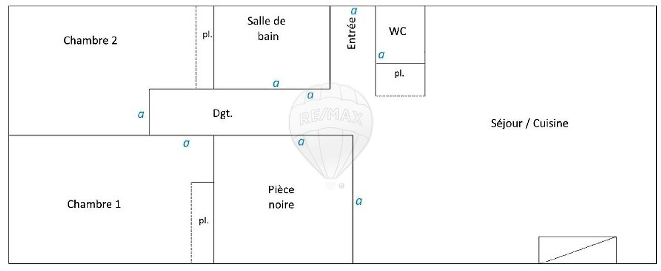 Au centre ville de PODENSAC, dans une rue calme, appartement T3 Bis: entrée, séjour avec cuisine ouverte aménagée et équipée (plaque, hotte et four), 2 chambres, 1 bureau ou pièce de rangement (pièce noire), salle d'eau et wc séparés - Grande terrasse sans aucun vis à vis.