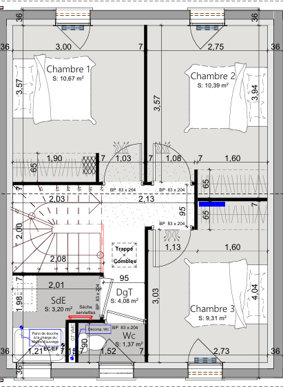 Ce projet comprend une maison à étage de 80 m², parfaitement agencée, proposant :