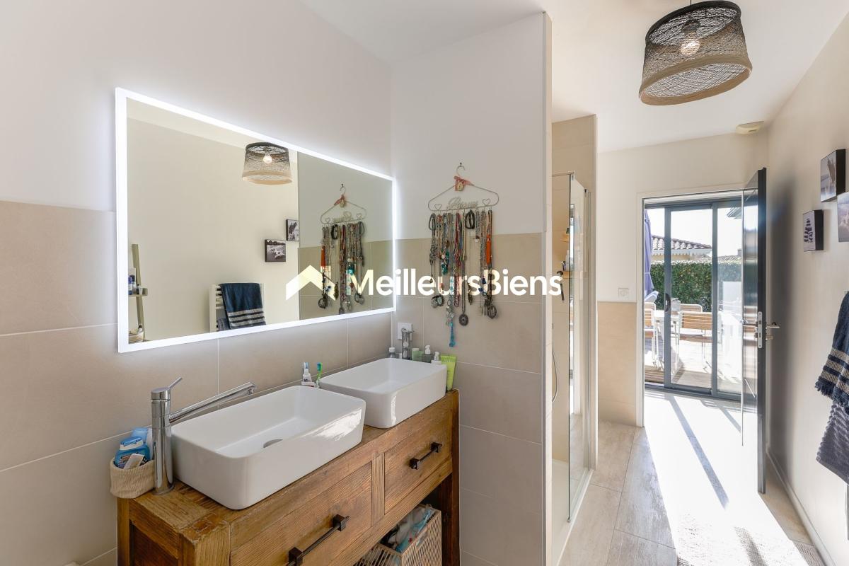 À vendre – Maison contemporaine à La Brède (33650) - commune prisée au sud de Bordeaux. Située dans un environnement prisé, à quelques minutes du centre-ville, des écoles et des commodités, cette maison individuelle de 143 m² habitables séduit par ses volumes généreux et ses prestations haut de gamme. Elle offre une entrée lumineuse, un vaste salon séjour avec baie à galandage ouvrant sur terrasse, jardin et piscine, une cuisine ouverte moderne et fonctionnelle avec cellier buanderie attenant, une suite parentale avec salle d'eau et dressing, deux chambres avec possibilité d'en créer une troisième, ainsi qu'une salle de bains avec baignoire et douche. Côté confort et prestations : piscine privée sans vis-à-vis, chauffage PAC au sol, climatisation réversible, alarme, portail automatique, stationnement privatif et assainissement tout à l'égout. Une propriété rare sur le marché, idéale pour une vie familiale premium, alliant confort, sécurité, tranquillité et proximité immédiate des commodités. Contactez-moi pour obtenir le dossier complet et organiser une visite.nLes informations sur les risques auxquels ce bien est exposé sont disponibles sur le site Géorisques : www.georisques.gouv.fr