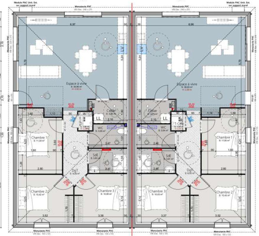 Prestations de qualité aux normes RE et bénéficiant de la climatisation par système T-one de chez Aldes, domotique des volets roulants, carrelage grand format, faïence murale dans les salles d'eau, etc...)