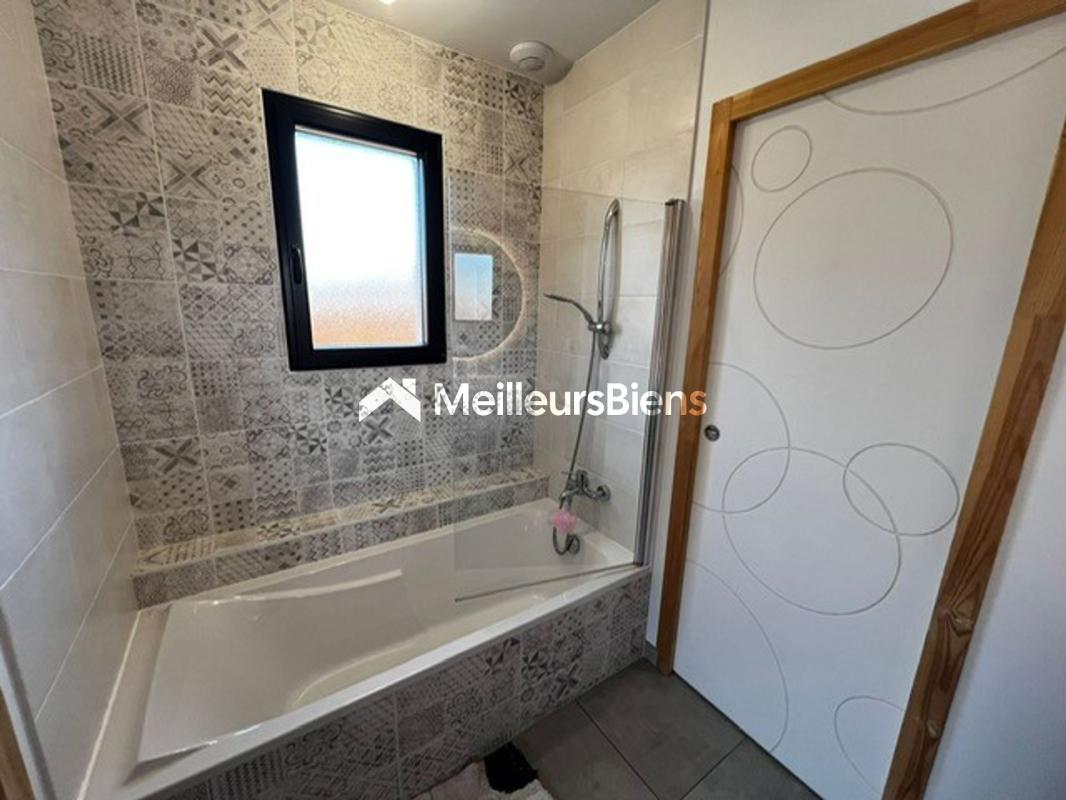 • 1 salle de bain traversante indépendante avec baignoire et double vasques communicative avec 2 chambres.