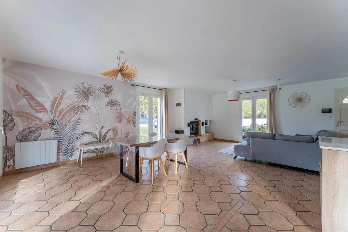 Découvrez cette charmante maison individuelle de 100 m², idéalement agencée avec une grande pièce de vie lumineuse, embellie par une cheminée chaleureuse. La cuisine ouverte est complètement équipée et aménagée pour votre confort. Vous profiterez de trois belles chambres et d'une salle de bains, apportant fonctionnalité et espace à votre quotidien. La propriété dispose également d'une terrasse accueillante qui s'ouvre sur un magnifique jardin de 2500 m², où se trouve une piscine pour des moments de détente en famille ou entre amis.