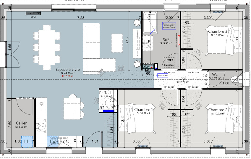 Ce projet comprend une maison rectangulaire de 90 m², parfaitement pensée, proposant :